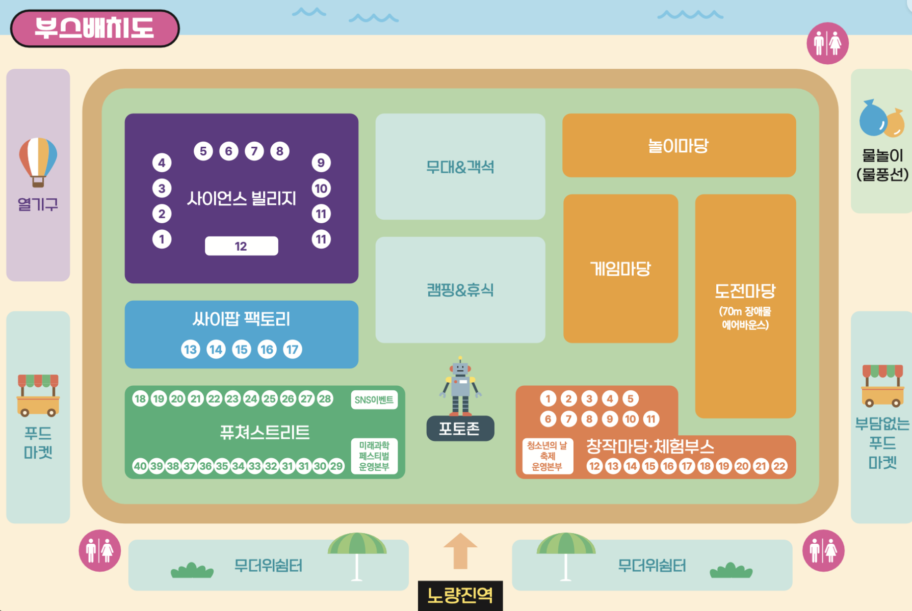 - 즐길 거리: 대형 에어바운스, 대형 미로, Y-동작 게임왕 선발대회 등