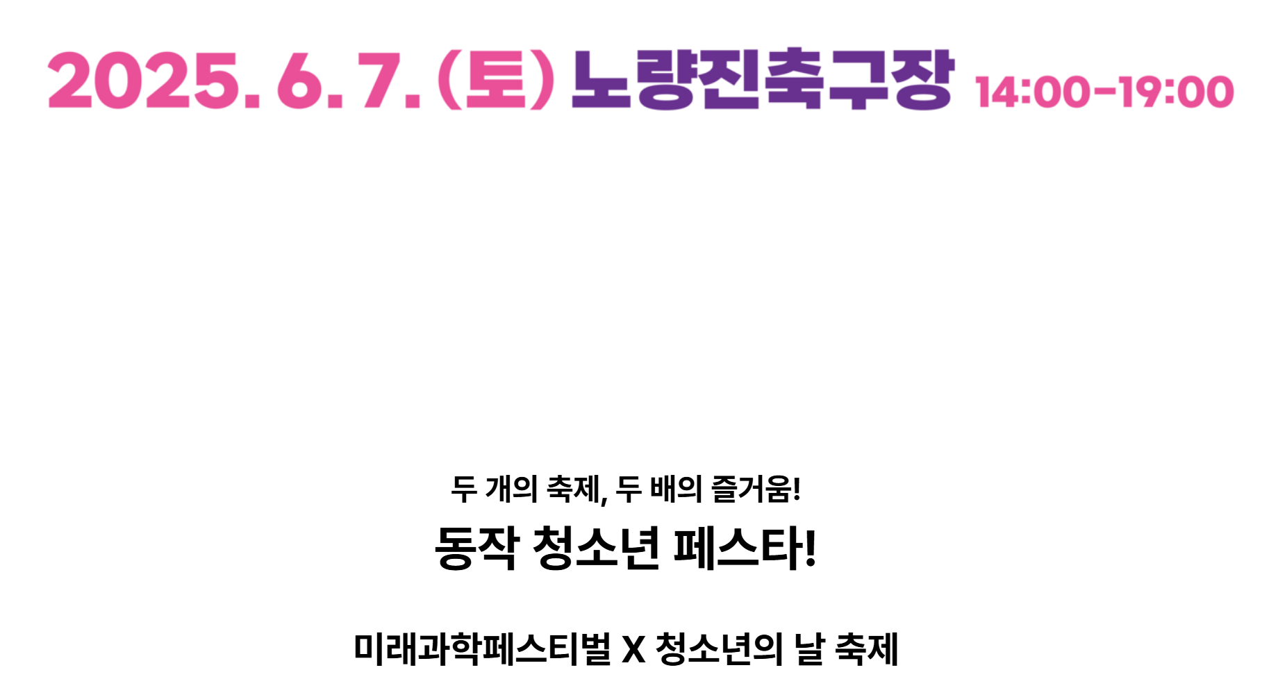 2025 동작 미래과학페스티벌은 2025년 6월 7일 토요일, 노량진 축구장에서 진행될 예정이에요. 딱 하루! 짧지만 강렬한 경험을 할 수 있답니다.