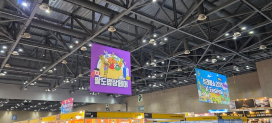 트래블쇼에서는 일본, 푸켓 등 다양한 해외여행 정보와 특가 패키지, 몽골 게르 체험, 도쿄 해리포터 스튜디오 포토존 등 이색 부스가 많아요. 팔도 밥상 페어 등에서는 전국 특산물, 간식, 해산물, 편육, 수박식빵, 요거트 등 시식·구매가 가능합니다. 주방용품·그릇·인테리어 소품 등도 대폭 할인 판매! 폴딩카트·장바구니 챙기면 쇼핑이 훨씬 편리합니다.